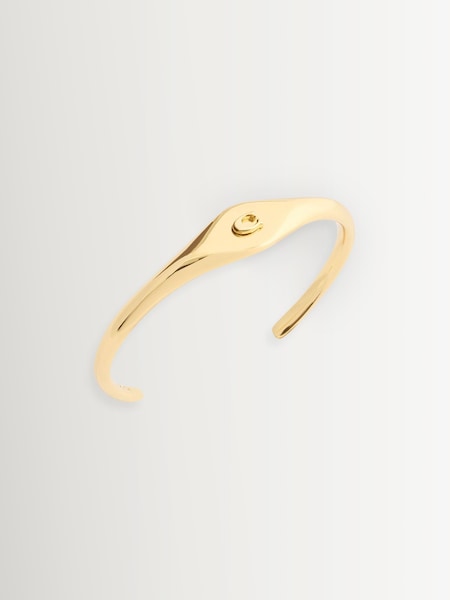 Gold Tone Signature Signet Cuff Bracelet