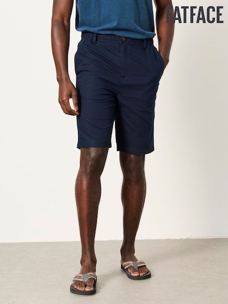 Navy/Oatmeal Linen Blend Elasticated Waist Shorts 2 Pack