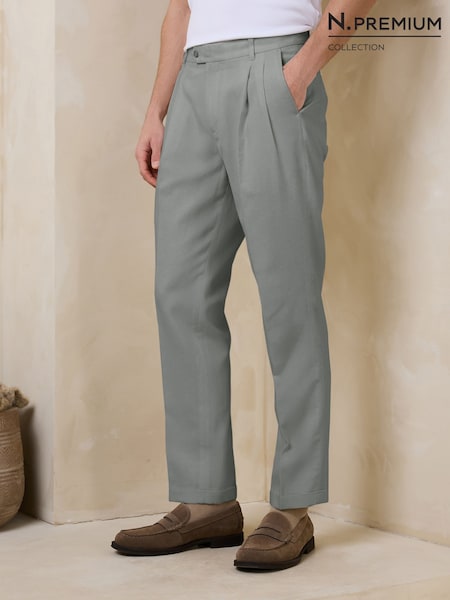 Sage Green N.Premium TENCEL™ Lyocell Cotton Blend Twin Pleat Smart Trousers