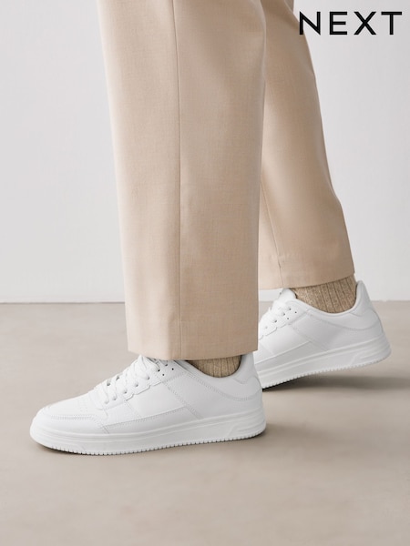 White Smart Casual Lace-Up Trainers with Suede Trim